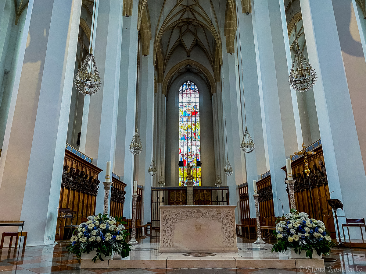 Собор Пресвятой Девы Марии, называемый чаще Фрауэнкирхе, — великолепный образец готической архитектуры и один из самых почитаемых соборов Германии. Его две колокольни, увенчанные крытыми темно-зелёной жестью куполами, возносятся над городом на небывалую высоту — 99 м, а протяженный неф с двускатной черепичной крышей весьма напоминает Ноев ковчег. Внутри — лес белоснежных колонн, сходящихся в нервюрные арки, обилие памятных плит (в том числе от двух последних Пап), изумительные витражи и красивые барельефы. Любители мистических историй приходят во Фрауэнкирхе для того, чтобы собственными глазами увидеть отпечаток ноги дьявола, с которым связаны самые невероятные легенды.