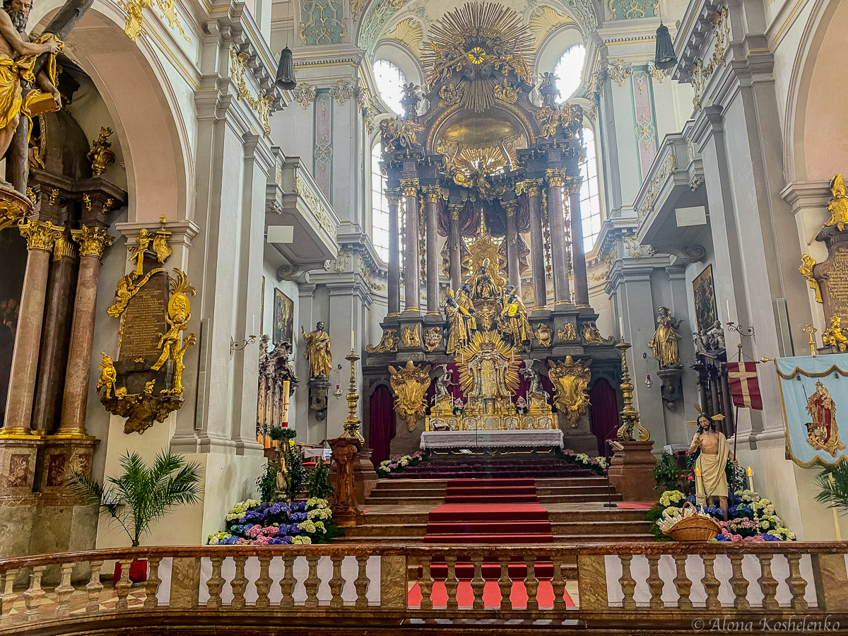 и статуи святых и праведников в стиле рококо, выполненные Игнацем Гюнтером.