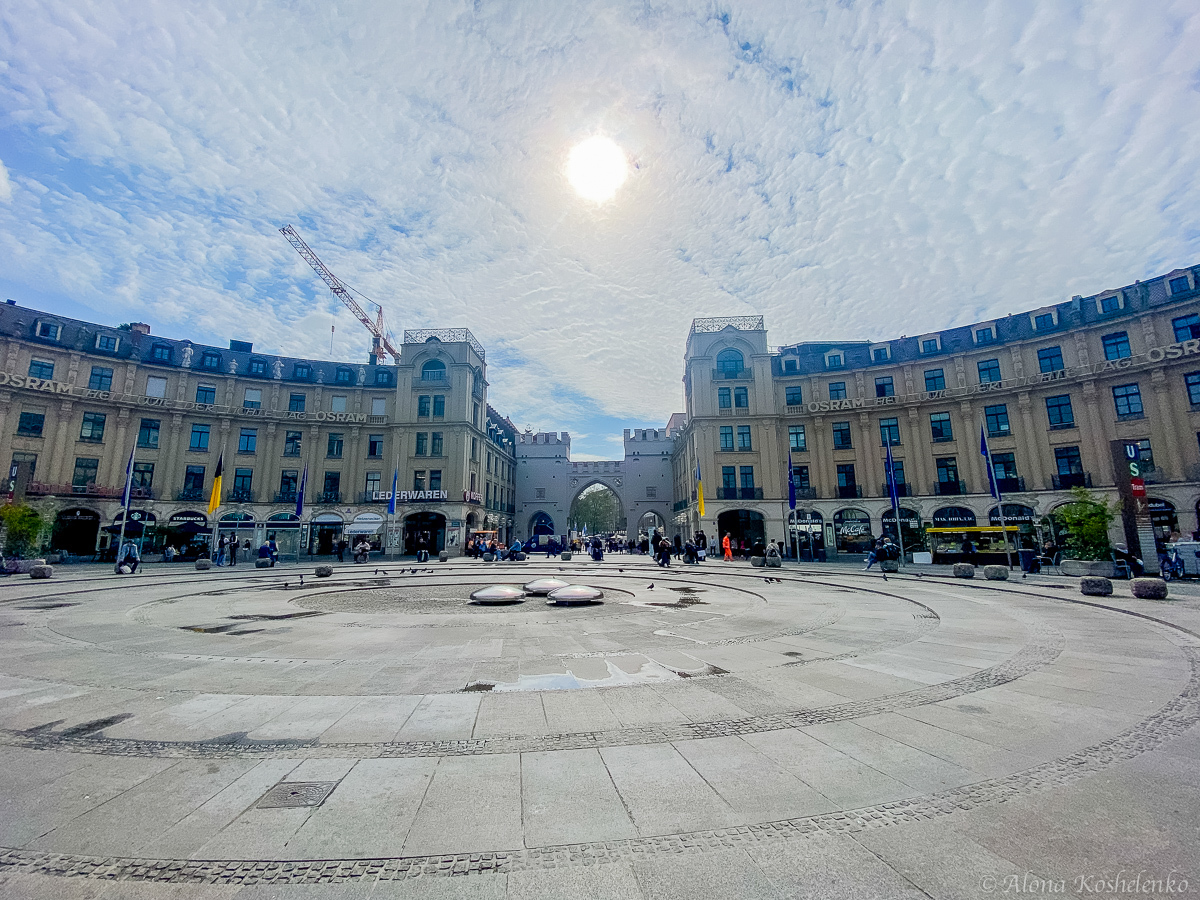 Крепостные стены и башни снесли в 1791 г., оставив только ворота. Официальное название в честь курфюрста Карла II Теодора, которого горожане не любили, так и не прижилось. Мюнхенцы переименовали их в «Штахус» — в честь кабака Beim Stachus, стоявшего на площади у проезда. Изначально над воротами возвышалась мощная центральная башня, но в 1857 г. ее разрушил взрыв хранившихся рядом запасов пороха. Руины разобрали и соорудили то, что мы видим сегодня — две небольшие псевдоготические башни, соединенные мостом, и три высоких стрельчатых портала.