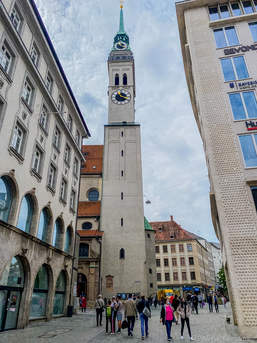 А вот и Мариенплатц, обе ратуши и Церковь Святого Петра (Петерскирхе).